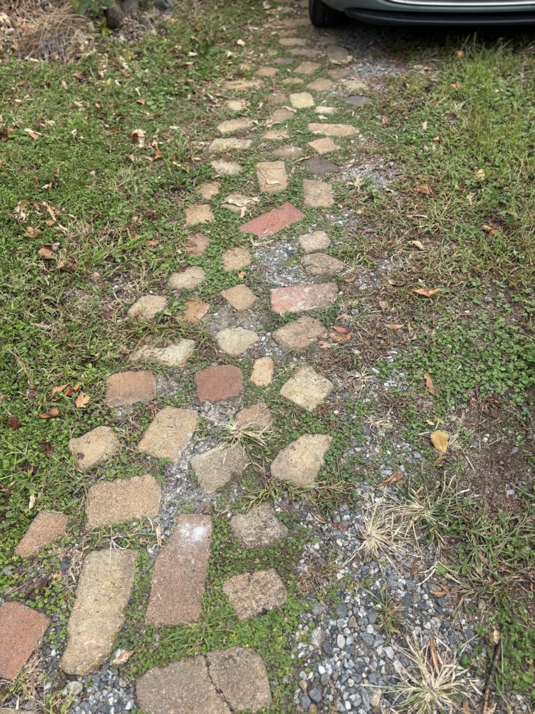 2、古レンガを敷いた駐車場兼アプローチ